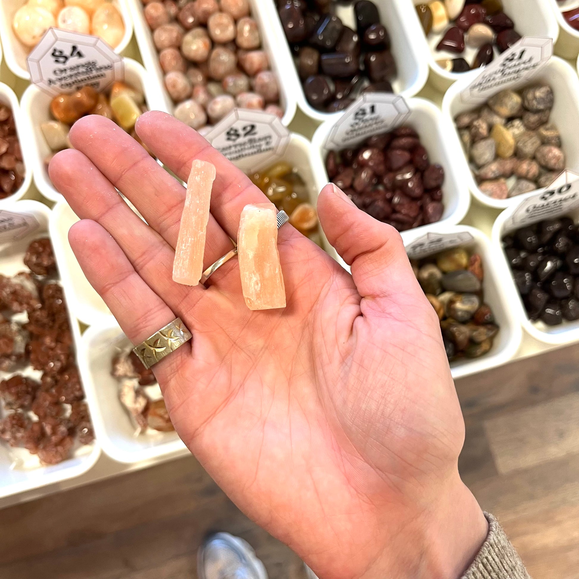 A pocketful of positivity! Peach Selenite is the crystal for emotional healing and can help to combat stress and anxiety. This stone will foster the cleansing energy of selenite while assisting with any new beginnings coming in your life.